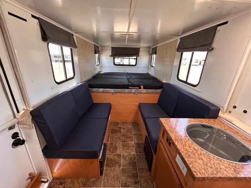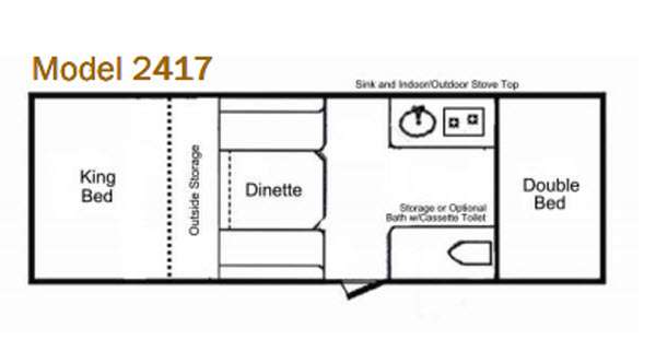 Sport Deck Travel Trailer, Rear King Bed, Outside Storage, Dinette, Single Galley Sink, Front Double Bed Slide, Storage & Much More. Available Options May Include: Bath w/Cassette Toilet.