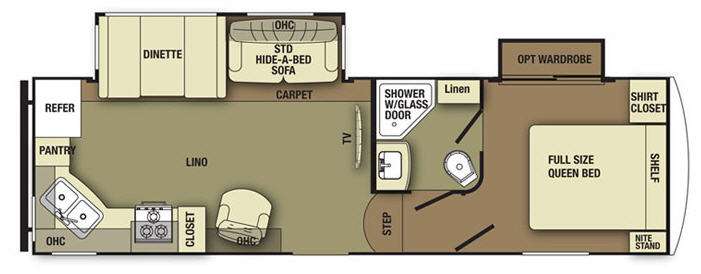 Yellowstone RV Canyon Trail XLT FW w/Rear Kitchen Including Pantry, Dbl. Kitchen Sink, 3 Burner Range, Refrig., Ent. Center, Booth Dinette & Sofa Slideout, Ent. Center, Step Up to Side Aisle Bath w/Angle Shower, Toilet & Sink, Dbl. Bath Entry, Front Queen Bed w/Shirt Closets Both Sides, and Much More! Available Options May Include: 32" TV in Living Area,.