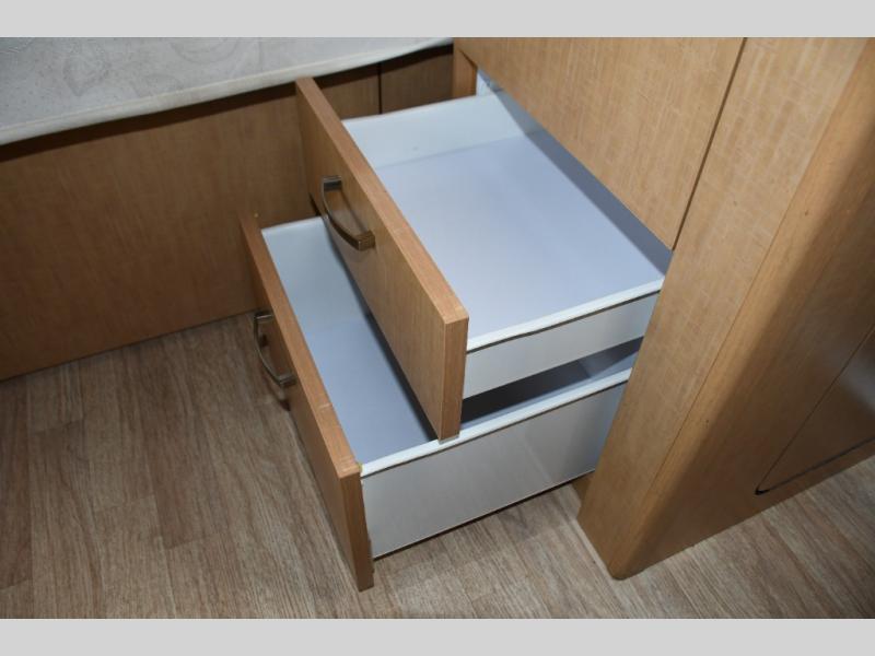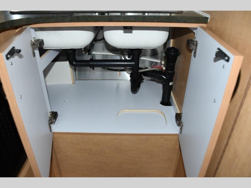 The efficient galley includes essential appliances, practical counter space, and smart storage solutions that make cooking on the road simple and enjoyable. A convenient bathroom setup allows for self-contained travel, giving you flexibility and confidence wherever your adventures take you.
