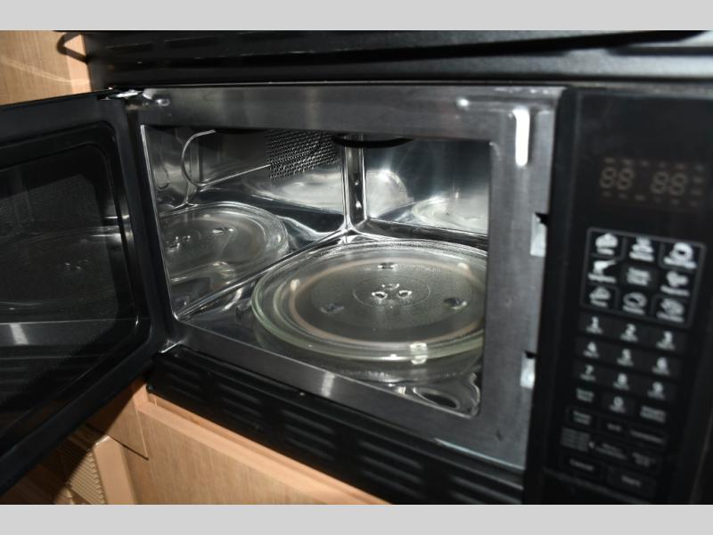 Inside, the front bed layout provides a comfortable sleeping space with convenient storage, while panoramic windows throughout the trailer bring in natural light and scenic views. The open, airy design makes the space feel larger than its footprint suggests, creating a welcoming atmosphere whether you’re parked at a lakeside campground or a national park.