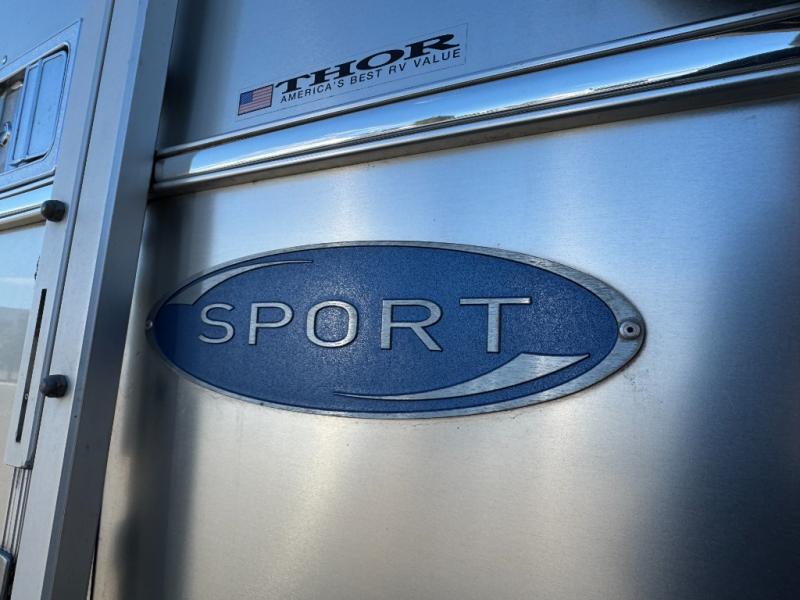 Bright Aluminum Finish- White Finish on Roof • Sport Medallion • Bambi Medallion • Chrome Beltline & Rub-Rail Inserts • License Plate Bracket w/LED Light • Grab Handle- Cast Aluminum • Enclosed & Insulated Underbelly & Tanks • C.S & R.S. Awning Rails • Light Grey C.S. Patio Awning • Main Door • Solar Stone Guard • Coach Guard Wrap Protectors • Insulated & Heated Tanks • LP Bottle Cover • LED Taillights w/Chrome Bezel- 4" Round • Exterior Shower • Exterior LP Service Port w/Quick Connect Hose & Adapter Fitting.