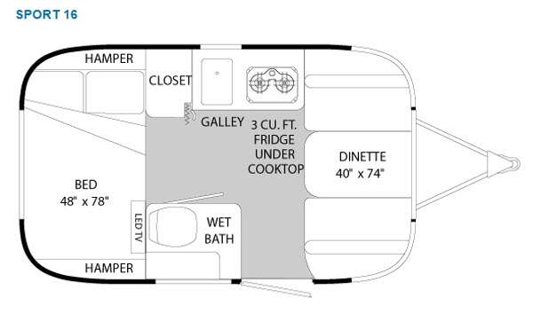 Air Conditioner w/Manual Controls (11,000 BTU-16'; 13,500 BTU- 22') • 12,000 BTU Furnace • 2 Burner Cooktop w/ Glass Cover • 2-Way 3 cu ft. Refrigerator (16'); 3 Way 4.2 cu ft. Refrigerator (22') • Probeless Tank Monitoring System (Wall Mounted) • 6 Gallon Water Heater w/ Electronic Ignition • Fire Extinguisher • Smoke, LPG & Carbon Monoxide Detectors • Comfort Air Fan (Rear-Exhaust Only) • Convection Microwave (N/A 16').
