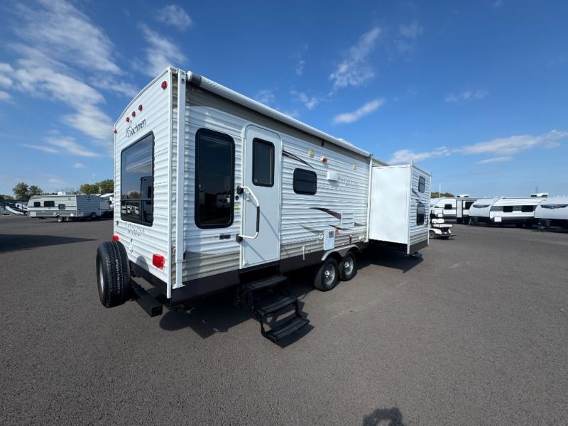 Catalina Deluxe Travel Trailer by Coachmen RV w/Rear Living Area Including: 2 Chairs w/Table Between & Overhead Storage, Sofa & U-Shaped Dinette Slide, Ent. Center, Kitchen Sink, 3 Burner Range, Microwave Above, Refrig., Pantry, Wardrobe, Slideout Sofa w/Upper Bunk, Bath w/Toilet, Sink, Tub/Shower, Kids TV Ent. Center in Hall, Front Queen Bed w/Wardrobes Both Sides, Overhead Storage, Bedroom TV & Wardrobe, Private Bedroom Entry and More!