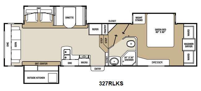 Coachmen Chaparral Signature Series FW w/Rear Living Area Including: Sofa, Slideout Ent. Center, Opposite Slideout Chairs & Booth Dinette, Dbl. Kitchen Sink, 3 Burner Range w/Microwave, Refrig., Pantry, Entry Closet, Step Up to Side Aisle Bath w/34 x 34 Shower Pan, Toilet & Sink, Corner Hall Closet, Door to Front Queen Bed & Nightstand Slideout, Wardrobe/Washer/Dryer/Wardrobe, Dresser, Outside Kitchen on Ent. Center Slide and Much More!