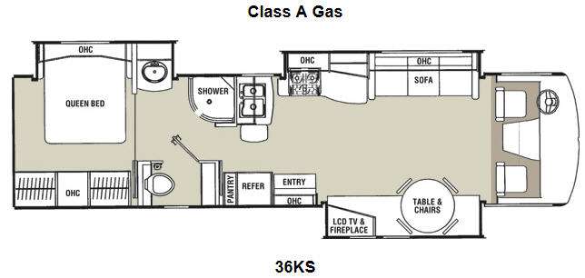 Triple Slide Coachmen Encounter Class A w/Rear Queen Bed Slide w/Sink, Corner Shower, Private Toilet Area, Wardrobes w/LCD TV Above, Pantry, Refrigerator, Dbl. Kitchen Sink w/Overhead Cabinet & Counter Extension, 3 Burner Range/Pull-Out & Sofa Slide, Overhead Storage Above Cab Area, LCD TV/Fireplace Below & Round Dinette w/Chairs Slideout and More! Available Options May Include: Chalet Upgrade Interior Package.
