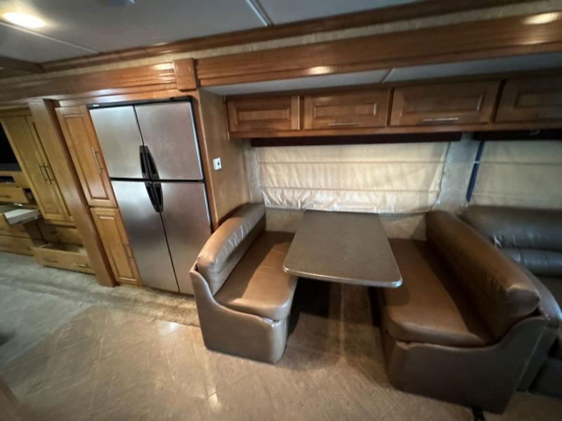 Coachmen Encounter Class A Coach w/Rear Full Bath Including Corner Shower, Toilet, Vanity w/Sink & Linen Cabinet, King Bed Slideout, Wardrobes/LCD TV/Pantry/Refrigerator/Booth Dinette & Sofa Full Wall Slide, Overhead Cabinets Throughout, Chair Behind Passenger Seat, Dbl. Kitchen Sink, 3 Burner Range, 1/2 Bath, LCD TV in Living Area & Much More! Available Options May Include: Chalet Upgrade Interior Package.