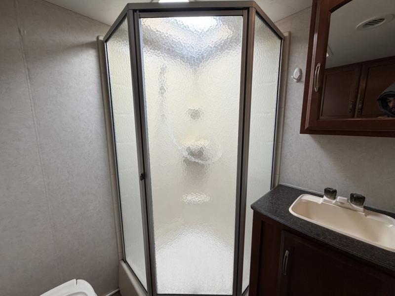 Freedom Express Travel Trailer w/Rear Full Bath Including: Angle Shower, Toilet & Sink, Wardrobe, Pantry, U-Shaped Dinette Slide, Refrigerator, 3 Burner Range w/Microwave, Dbl. Kitchen Sink, Overhead Storage, Front Queen Bed w/Wardrobes Both Sides, Pass-Thru Storage, and Much More! Available Options May Include: Outdoor Storage & Camp Kitchen.