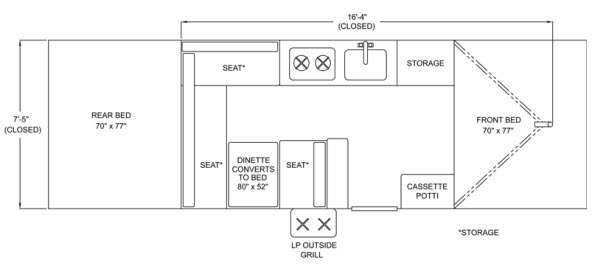 Off Road Somerset Folding Pop-Up Camper, Front and Rear Tent Beds, Seat, 2-Burner Range, Single Galley Sink, Storage, Dinette, Outside Grill & Much More.