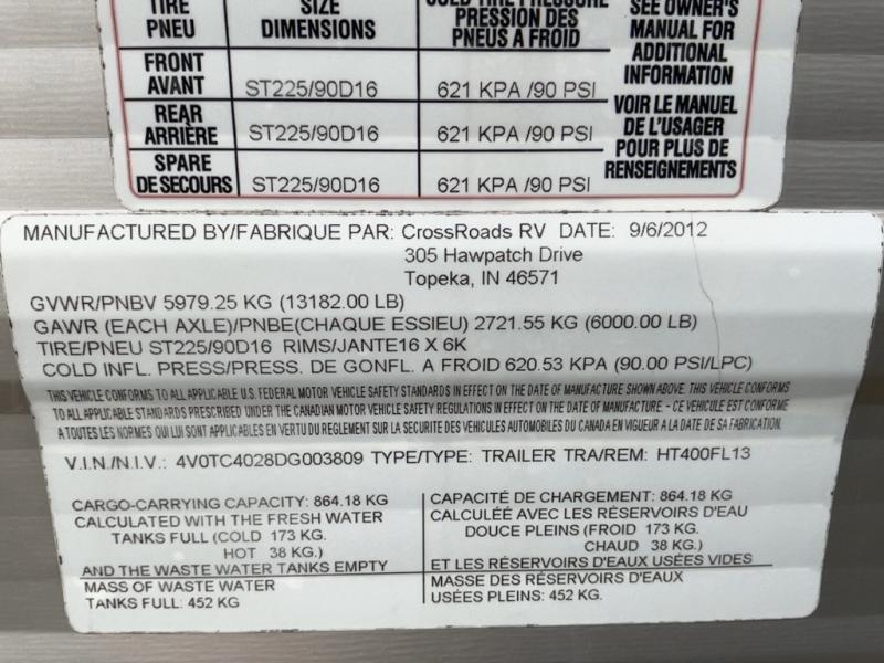 Used 2013 CrossRoads RV HAMPTON HT400FL Destination Trailer