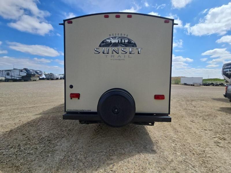 Single Slide Sunset Trail Travel Trailer by CrossRoads RV, Rear Bath w/Corner Shower, Toilet, Lav., Rear Bunk Base w/Bunk Above, Ward., Refrig., Booth Dinette, TV, 3 Burner Range w/Micro. Above/Double Kitchen Sink/Sofa Slideout, 32" LCD TV Flip Around Entertainment Center, Front Queen Bed w/Dbl. Shirt Closets & Nightstands, Overhead Cab. Throughout, & Much More. Available Options May Include: Grill.