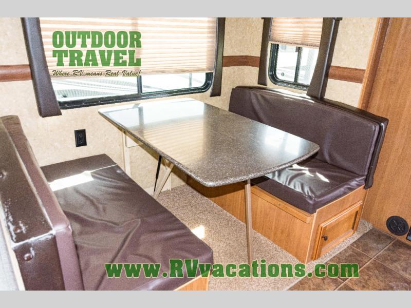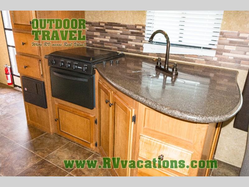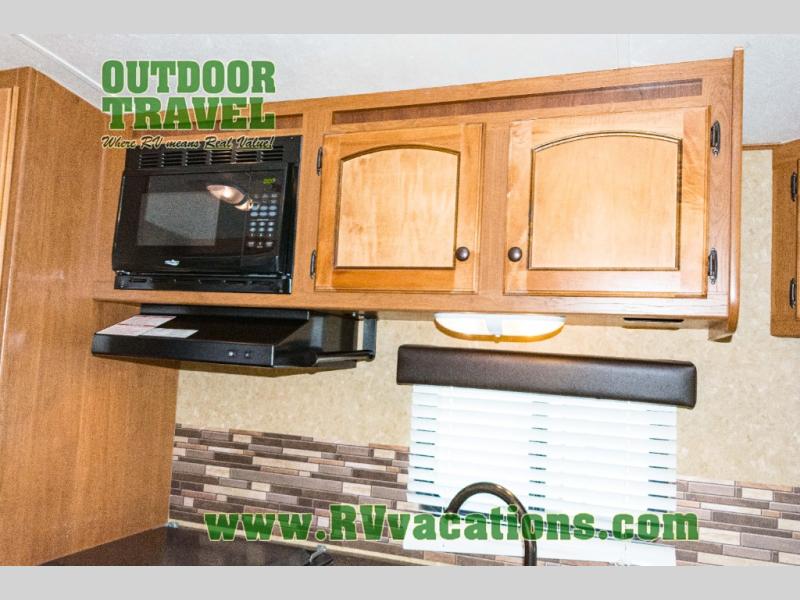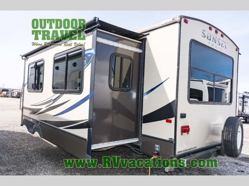Single Slide Sunset Trail Travel Trailer, Rear Living Area w/Full Wall Entertainment Center, 2-Lounge Chairs, Sofa/Super Booth Dinette Slideout, Double Kitchen Sink, 3-Burner Range, Pantry, Linen, Refrigerator, Corner Shower, Lav., Toilet, Front Queen Bed, Dbl. Wardrobes, Overhead Cabinets Throughout & Much More. Available Options May Include: Grill.