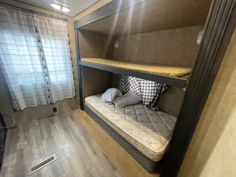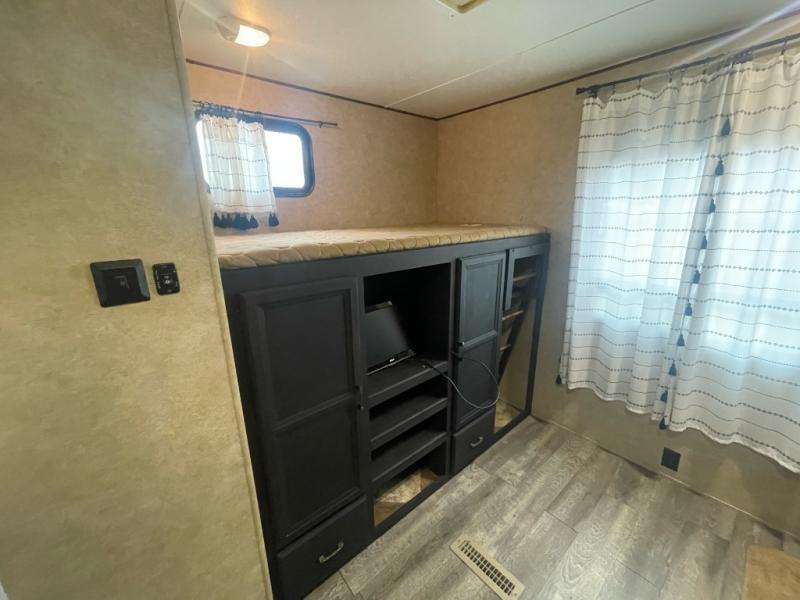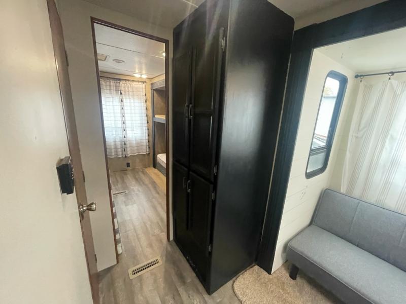 Double Slide Zinger Bunkhouse Travel Trailer by CrossRoads w/Rear & Side Entry, Slide Out Jackknife Sofa w/Flip Up Bunk Above & Trundle Bed Below, Rear Wardrobe w/Bunk Above, Outdoor Kitchen w/Refrigerator, Sink, Rear Side Trunk, Tub/Shower, Toilet & Lav. w/Med. Cabinet, Pantry, U-Shaped Dinette & Sofa Slide Out w/Overhead Storage Above Sofa, Ent. Center, Double Kitchen Sink, 3 Burner Range, Refrigerator, Microwave, Front Queen Bed w/Shirt Closets and More! Available Options May Include: Grill.