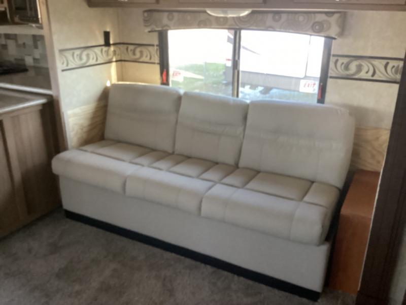 Cruiser Enterra Travel Trailer w/Rear Kitchen Including: Refrigerator, Counter & Overhead Space, Dbl. Kitchen Sink, Slideout Booth Dinette & Rockers w/Overhead Storage, Slideout 3 Burner Range/L-Counter w/Overhead Storage & L-Sofa w/Overhead Cabinets, Ent. Center, Side Aisle Bath w/Angle Shower w/34" Glass Door, Linen Cabinet, Toilet & Sink, Front Queen Lift Up Bed Slide, Overhead Storage, Full Front Wall Wardrobe w/Sliding Doors, Chest of Drawers w/Overhead Cabinet, Front Pass-Thru and More!