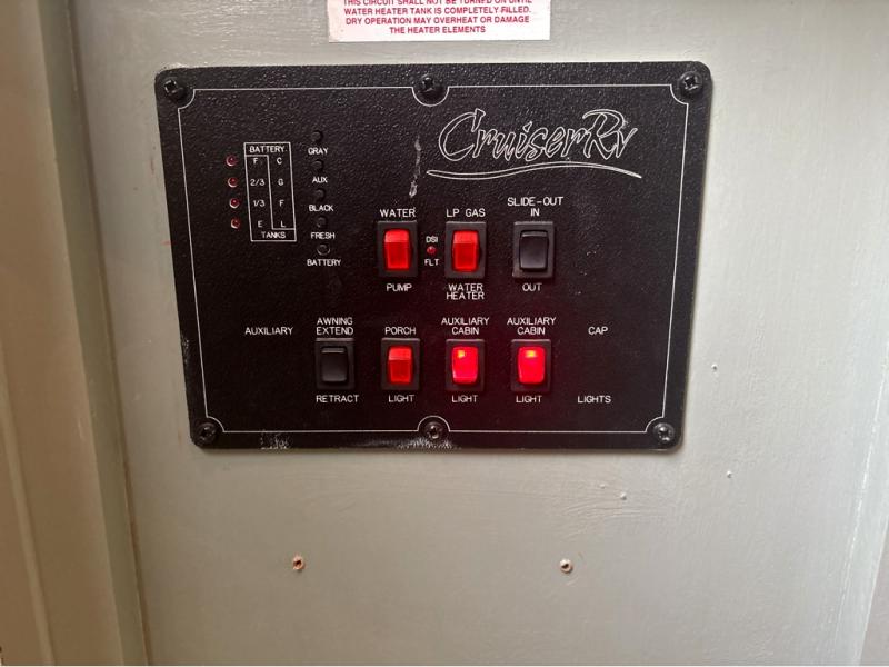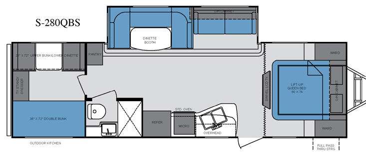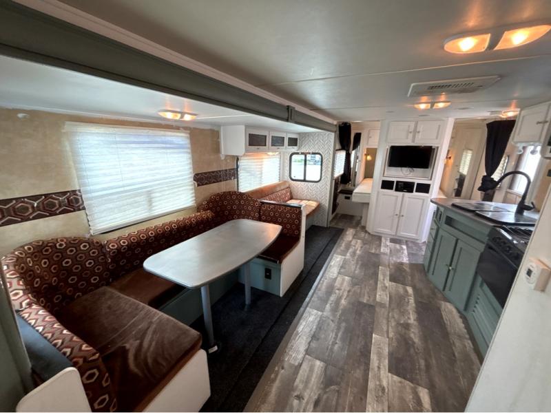 Cruiser Shadow Cruiser Bunkhouse Travel Trailer w/Rear Bunk Beds, Booth Dinette w/3rd Bunk Above, TV Stand/Dresser, Pantry, U-Dinette & Sofa Slide w/Overhead Cabinet Above, Tub/Shower, Toilet & Sink, Refrigerator, 3 Burner Range w/Oven, Dbl. Kitchen Sink, Swivel TV, Front Lift-Up Queen Bed w/Wardrobes Both Sides, Pass-Thru Storage, Outdoor Kitchen and More!