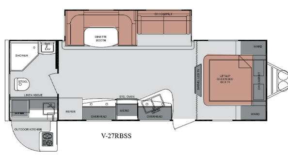 Cruiser RV ViewFinder Signature Travel Trailer w/Rear Full Bath Including Angle Shower, Sink, Toilet & Linen Storage Above Exterior Outdoor Kitchen, Refrigerator, 3 Burner Range, Dbl. Kitchen Sink w/Overhead Storage, Counter Space, U-Dinette & Sofa Slideout w/Overhead Storage Above Sofa, Swivel LCD TV for Bedroom & Living Room Viewing, Front Queen Lift Up Bed w/Wardrobes Both Sides of Bed, Overhead Cabinet, Rear Outdoor Kitchen Includes Refrig., Swing Out Stove, Sink & Much More!