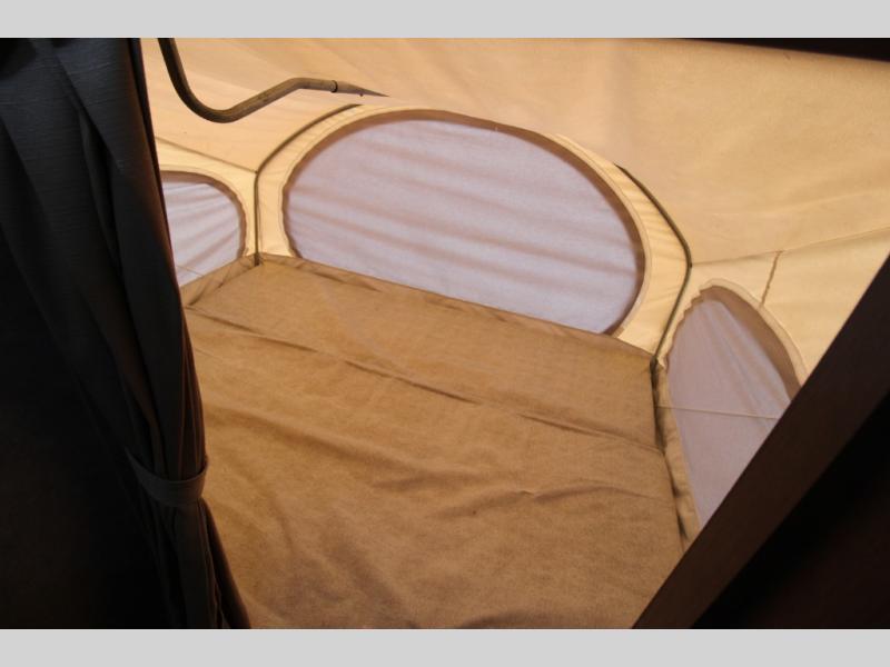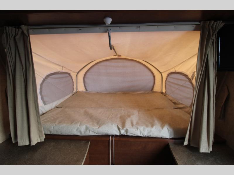 Kodiak Express Expandable w/Front & Rear Tent End Beds Both Queen Size, Overhead Shelf, Wardrobe, Rear Neo-Angle Shower w/Skylight, Toilet & Sink, 65" Sofa Bed w/Overhead Storage & U-Shaped Dinette Slide, End Tables, Dbl. Kitchen Sink, 3 Burner Range, Refrig., Pantry and Much More!