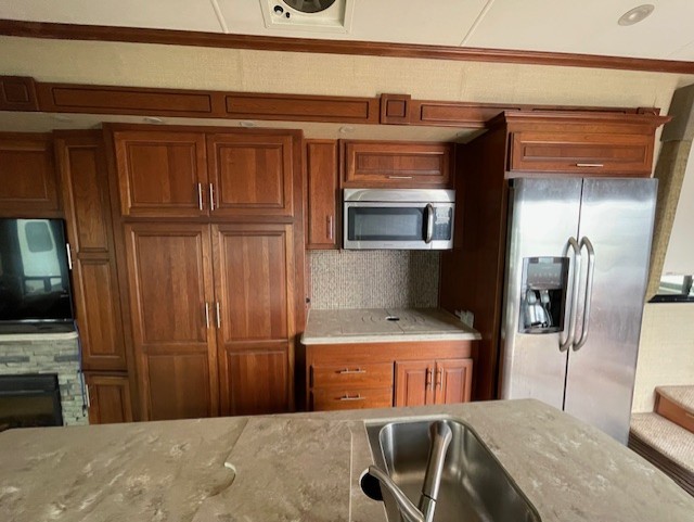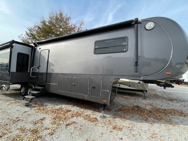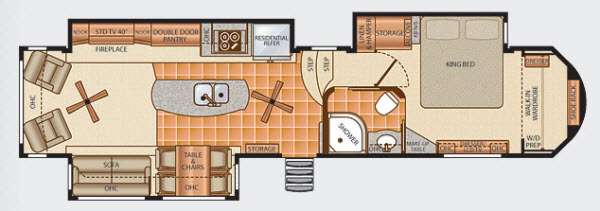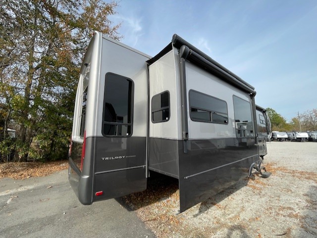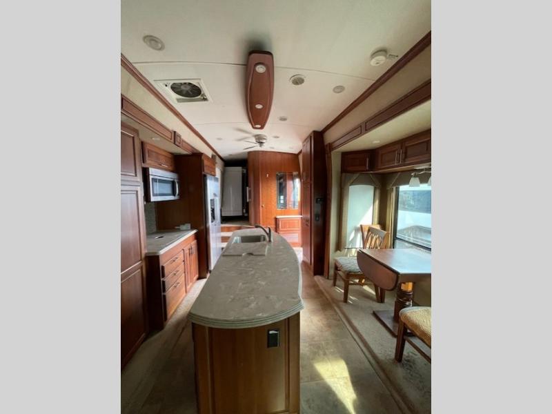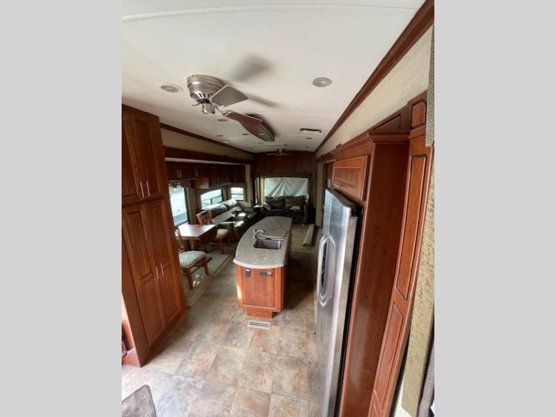 PRIORITY RV NETWORKTriple Slide Trilogy Fifth Wheel, Rear Living Area w/2 Lounge Chairs, Fireplace/Pantry/3-Burner Range/Refrigerator Slide, Kitchen Island w/Dbl. Kitchen Sink, Sofa/Table & Chairs Slide, Storage, Step Up To Bed/Bath, Linen & Hamper/Storage/King Bed Slide, Walk-In Wardrobe, Dresser, W/D Prep, Dresser, LCD TV, Make-Up Table, Shower, Lav., Toilet, Overhead Cabinets Throughout & Much More.