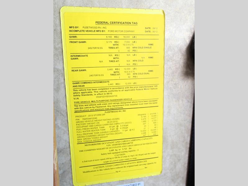 Used 2013 Fleetwood RV Storm 28F Motor Home Class A