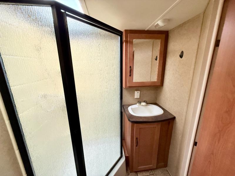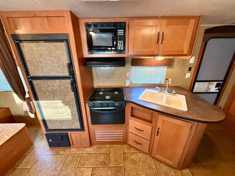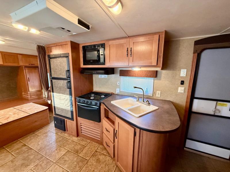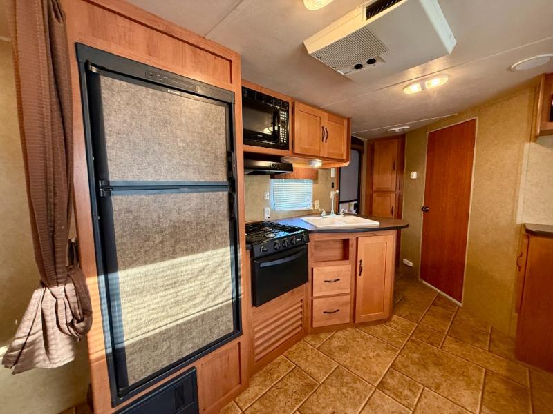 Single Slide Cherokee Grey Wolf Travel Trailer, Rear Bath w/Ward., Lav., Toilet, Tub/Shower, LCD TV Mount, Pantry, Sofa w/Removable Table Slide Out w/Shelf & Outside Storage, Refrig., 3 Burner Range, Microwave, Dbl. Kitchen Sink, Front Queen Bed w/Dbl. Ward., Overhead Cab., Front Outside Storage & Much More.
