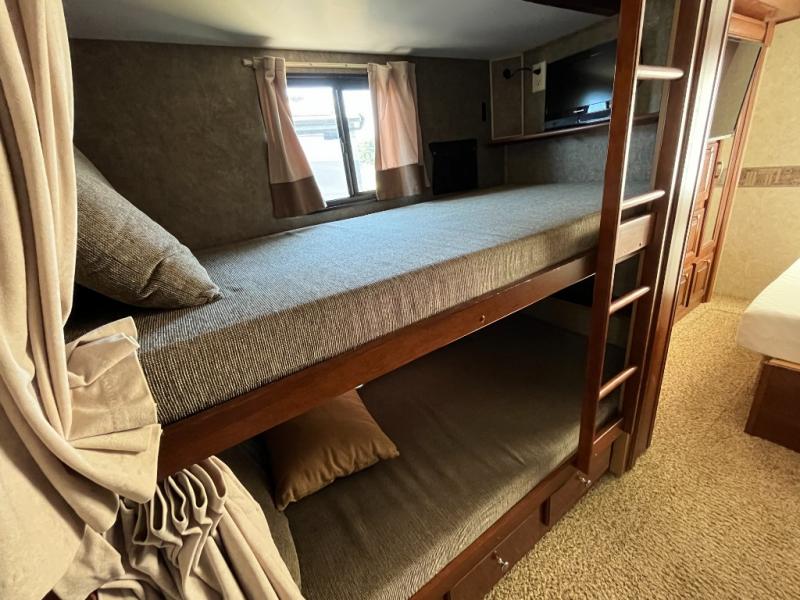 Double Slide Georgetown Motor Home, Rear Bedroom with TV/Wardrobe/Bunk Beds Slide, Queen Bed, Wardrobe, Shower, Lav., Toilet, TV, Dinette/Hide-A-Bed Slide, Barrel Chair, Double Kitchen Sink, 3-Burner Range, Microwave, Refrigerator, Pantry, Overhead Cabinets Throughout & Much More.