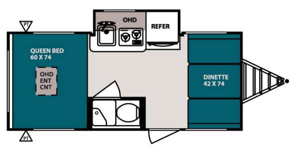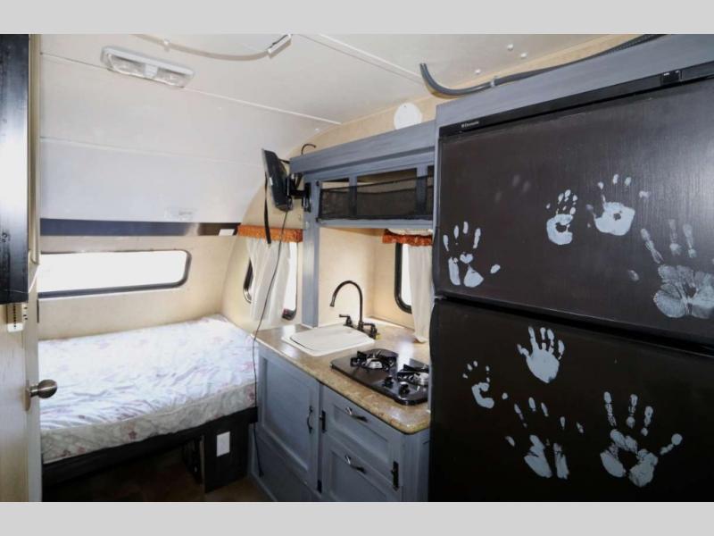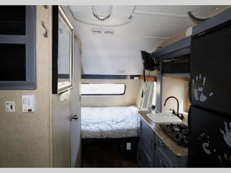 Single Slide R-Pod Travel Trailer, Rear Queen Bed w/Overhead Ent. Center, Bath w/Toilet, Slideout Single Galley Sink/2 Burner Range & Refrig., Overhead Cab., Front Booth Dinette & Much More.