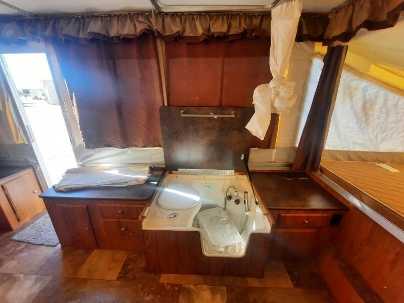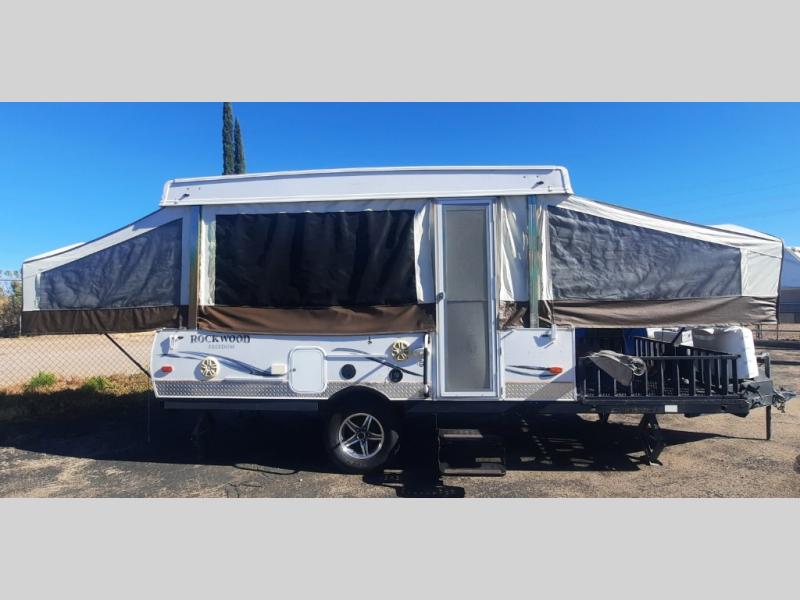 Single Slide Rockwood Freedom/LTD Camper w/Rear & Front Tent End Beds, Front Deck Storage w/Expanded Metal Decking, Storage Cabinets Throughout, Booth Dinette Slide Out, Swing Level Galley w/Sink & 3 Burner Cooktop, RVQue Grill Outside, Ice Box and More! Available Options May Include: Heater, Refrigerator.