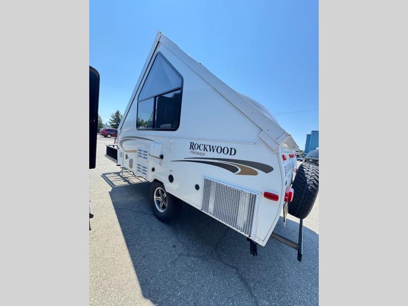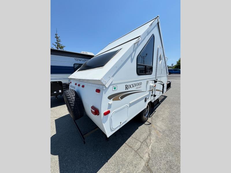 Rockwood Hard Side Folding Pop-Up Camper, Rear Sofa/Bed, Shelf, Cool Cat, Removable Table, Single Galley Sink, 3-Burner Range, Refrigerator, Furnace, Dinette, Conv. W/H, Micro. Cab., Removable Table, RVQUE Gas Grill, Awning, Front Deck Storage w/Expanded Metal Decking & Much More.