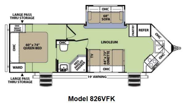 Single Slide V-Cross Vibe 800 Series Travel Trailer, Rear Queen Bed, Nightstand, Wardrobe, Toilet, Lav., Med. Cab., Neo-Angle Shower, TV, Dinette, Sofa Slide, Pantry, Refrigerator, Dbl. Kitchen Sink, 3-Burner Range, Microwave, Overhead Cabinets Throughout, Large Pass Thru Storage, 19' Awning & Much More.