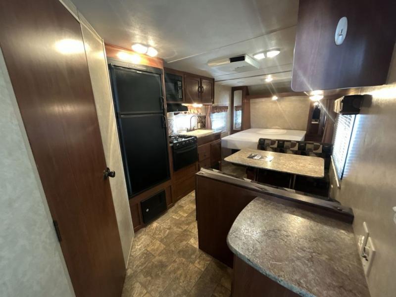 Wildwood X-Lite Travel Trailer, Rear Bath w/Lav., Med. Cab., Neo-Angle Shower, Toilet, Wardrobe, Ent. Center, Dinette, Queen Bed, Dbl. Wardrobes, Dbl. Kitchen Sink, 3-Burner Range, Microwave, Refrigerator, Overhead Cabinets Throughout & Much More.