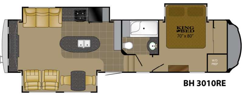 Heartland Bighorn FW w/Rear Entertainment, LCD TV w/Overhead Storage, Slideout Area w/2 Chairs & Dinette w/2 Chairs, Kitchen Island w/Dbl. Sink, Slideout Sofa/3 Burner Range/Refrigerator & Pantry, Ent. Center, Step Up to Side Aisle Bath w/Toilet, Sink & Tub/Shower, Linen, Front King Bed Slideout, Wardrobe w/Sliding Doors, Washer/Dryer Prep, Dresser and Much More!