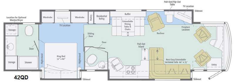 Ellipse Class A Diesel by Itasca w/1-1/2 Bath Including Rear Full Bath w/Shower, Storage Cabinet, Sink, Toilet, King Bed Slide w/Nightstands, Ward./Retractable 26" LCD TV/Ward./Pantry/4 Door Refrig./Dining Table & Chairs/Recliner/Pull-Out Table & 40" LCD TV Slideout, Rest Easy Extendable Sectional Sofa w/Coffee Table/3 Burner Range & Dbl. Kitchen Sink Slide, 1/2 Bath w/Vanity & Sink and More! Available Options May Include: Residential Refrig., Euro Recliner, Washer/Dryer, Fireplace, 2 Ottomans.