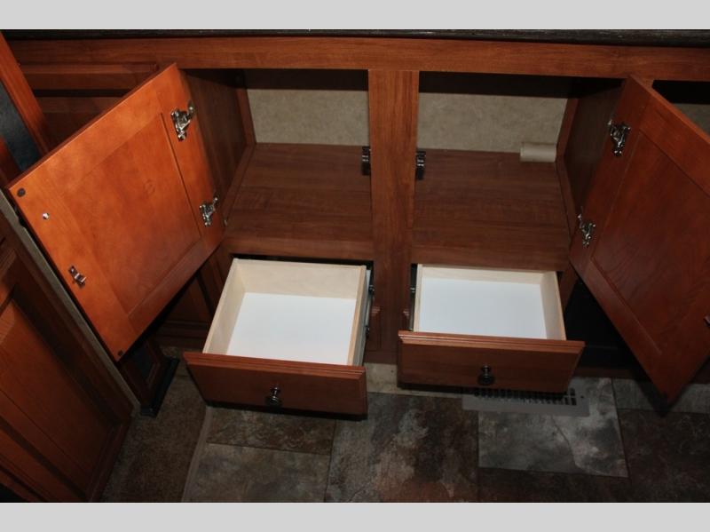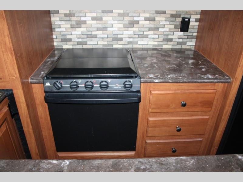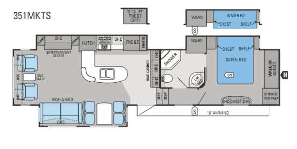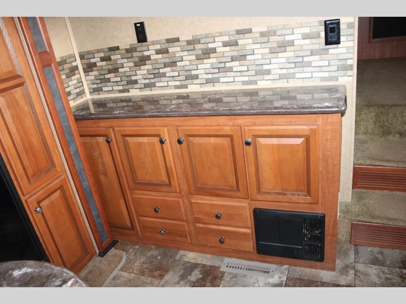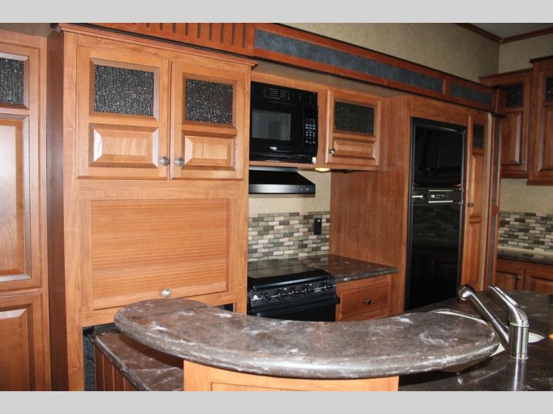 Triple Slide Eagle Premier Fifth Wheel, Rear 2-Lounge Chairs w/End Table, Dbl. Cabinets/Entertainment Center/Hutch/Micro./3-Burner Range/Refrigerator/Pantry Slide, Dbl. Kitchen Sink, Cabinet, Hide-a-Bed/Free-Standing Table & Chairs Slide, Step Up To Bed/Bath, Toilet, Shower, Lav., Wardrobe/Queen Bed Slide, Walk-In Closet, Storage, W/D Prep, Chest, Overhead Cabinets Throughout & Much More. Available Options May Include: King Bed, 12 cu. ft. Refrigerator.