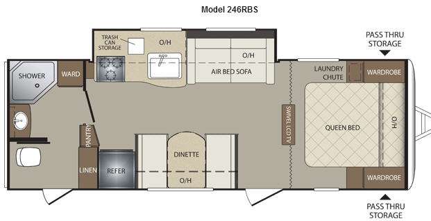Keystone Bullet w/Single Slideout, Rear Full Bath w/Private Toilet Area, Sink, Angle Shower, Linen Cabinet & Wardrobe, Pantry, Refrigerator, Booth Dinette w/Overhead Storage, 3 Burner Range/Kitchen Sink/Trash Can Storage & Air Bed Sofa Slide w/Overhead Cabinet & Spice Rack, Swivel LCD TV for Living Area & Bedroom Viewing, Front Queen Bed w/Wardrobes Both Sides of Bed, Laundry Chute, Pass-Thru Storage and More!