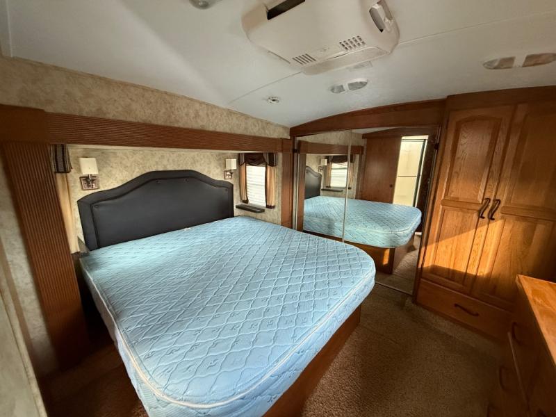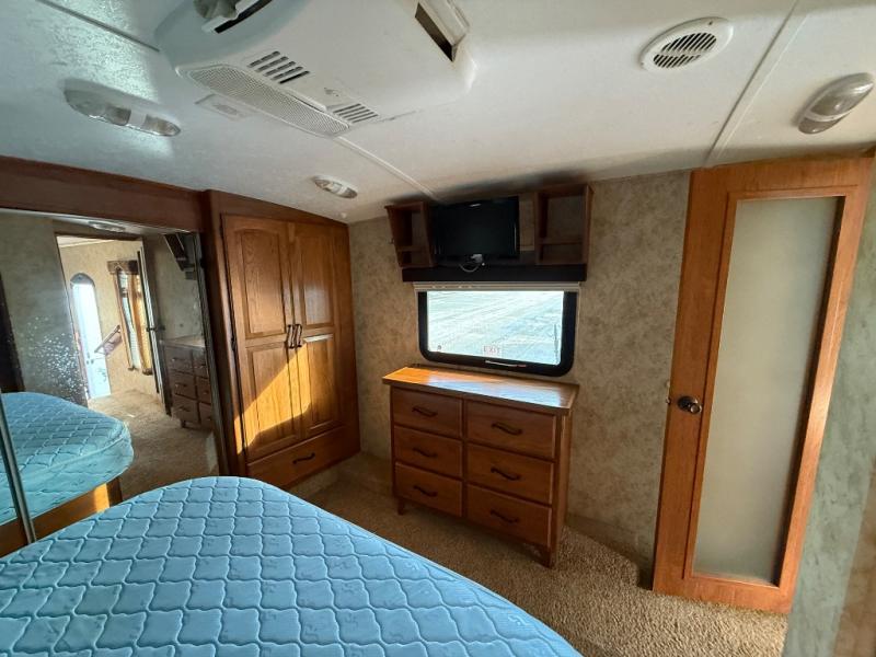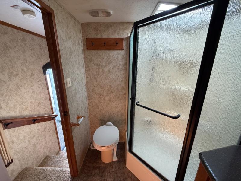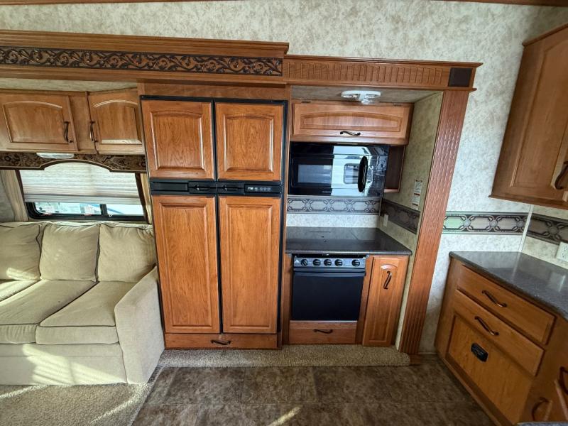 Keystone Montana FW w/Rear Living Area Including 2 Recliners, Overhead Cabinets, Free Standing Dinette & Ent. Center Slide w/LCD TV, Ceiling Fan, Hide-A-Bed Sofa/Refrig./Pantry/3 Burner Range Slideout, L-Counter w/Dbl. Kitchen Sink, Overhead Cabinet, Side Aisle Bath w/Garden Tub, Toilet & Sink, Dresser, LCD TV, Front Queen Bed Slide, Wardrobe, Storage Shelves and Much More!