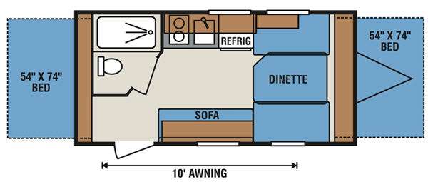 Spree Escape Expandable Travel Trailer, Front and Rear Expandable Bed, Toilet, Lav., 2-Burner Range, Single Galley Sink, Refrigerator, Dinette, Sofa, Overhead Cabinets Throughout, 10' Awning & Much More.
