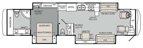 Quad Slide Diplomat, Rear Bathroom, Double Lav./Vanity, Full Wall Wardrobe, Toilet, Corner Shower, Queen Bed Slideout w/Nightstands, 26" LCD TV/Dresser/Washer/Dryer/Refrig./Double Kitchen Sink/Microwave/Galley Pull-Out/68" Sofa Slideout, Free-Standing Dinette/75" Sofa Slide, 40" LCD TV, Half Bath, Overhead Cab. Throughout & Much More! Available Options May Include: Hide-a-Bed Sofa, Roadside & Curbside, 2-Leather Euro Recliners, Workstation Din., Extendable Sofa, Booth Dinette Ensemble, King Bed.