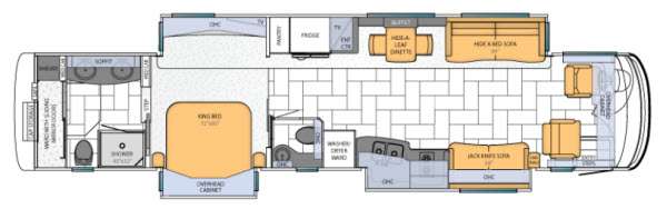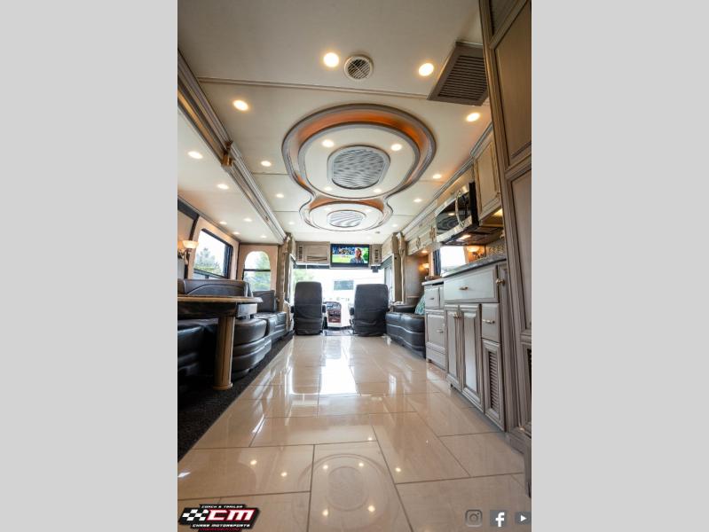 Triple Slide Essex Motor Home Class A, Rear Bath w/Shower, Toilet, Wardrobe w/Sliding Mirror Doors, Adjustable Shelves, Dbl. Lav., Med. Cab., King Bed Slide, Half Bath, Washer/Dryer, Dbl. Kitchen Sink/2-Burner Range/Jack-Knife Sofa Slide, Hide-A-Bed Sofa/Hide-A-Leaf Dinette/TV/Entertainment Center/Refrigerator/Pantry/TV Wall Slide, Overhead Cabinets Throughout & Much More.