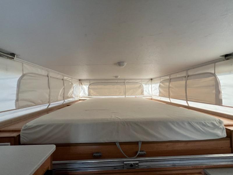 Northstar Pop-Up Truck Camper w/Extended Cabover for Full-Size Shortbed Trucks w/2 Burner Stove, Sink, Refrigerator, U-Shaped Dinette, Step Up to Queen Bed w/Hamper & Storage Both Sides and More.