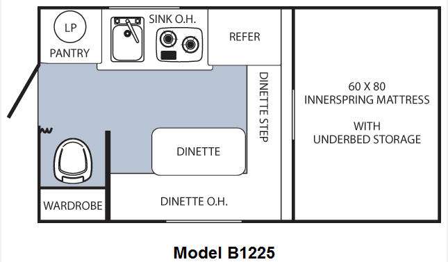 Bronco Folding Truck Camper by Palomino w/Rear Entry, Pantry/LP, Sink, Overhead Cabinet, 2 Burner Cooktop, Refrigerator, Dinette w/Table & Step to Queen Innerspring Mattress w/Underbed Storage, Rear Corner Wardrobe, Toilet and Much More!
