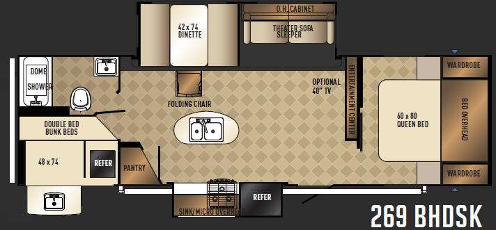 Solaire Ultra Lite Bunkhouse Travel Trailer by Palomino RV w/Rear Corner Bath Including: Dome Shower, Toilet & Sink, Rear Corner Dbl. Bunk Beds, Pantry, Booth Dinette & Theater Sofa Sleeper Slide w/Overhead Storage, Kitchen Island w/Dbl. Sink, Slideout Counter/3 Burner Range & Refrig., Ent. Center, Front Queen Bed w/Wardrobes Both Sides of Bed, Pass-Thru Storage, Outside Kitchen w/Refrig., Pull-Out Cooktop and Much More! Available w/Eclipse Package.