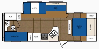 Single Slide Avenger LT Travel Trailer, Rear Bath w/Tub, Lav., Toilet, Bunk Beds, Pantry, Refrigerator, 3-Burner Range, Dbl. Kitchen Sink, Entertainment Center, Queen Bed, Dbl. Closets, Sofa/Dinette Slide, Wardrobe, Overhead Cabinets Throughout & Much More.