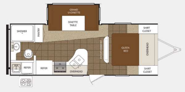 Single Slide Tracer Series Travel Trailer, Rear Bath w/Super Sized Shower w/Glass Doors, Lav., Toilet, Pantry, U-Grand Dinette Slide, Refrigerator, 3-Burner Range, Double Kitchen Sink, Ent. Center, Queen Bed, Double Closets, Overhead Cabinets Throughout, Outside Kitchen w/2-Burner Range & Much More.
