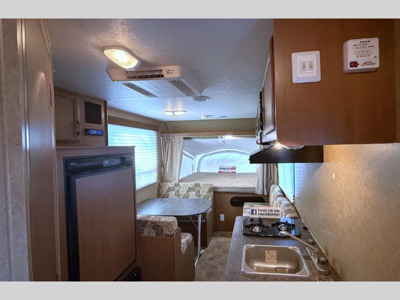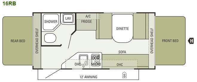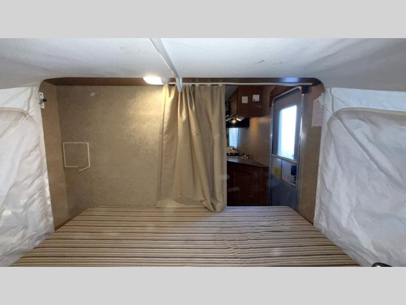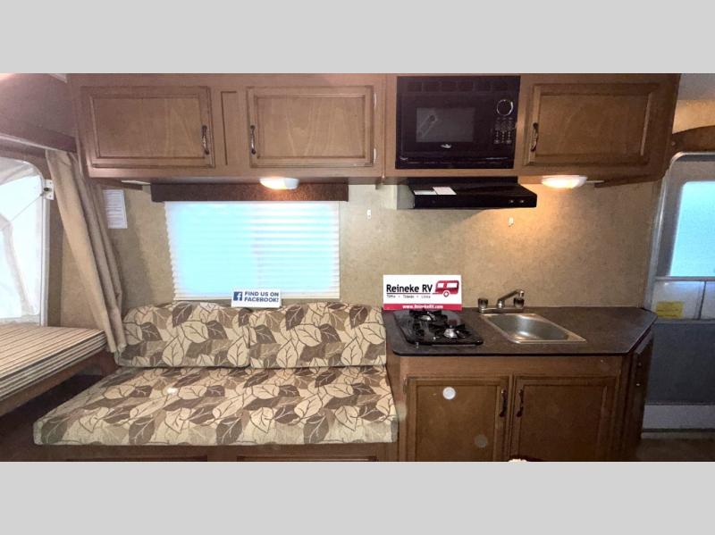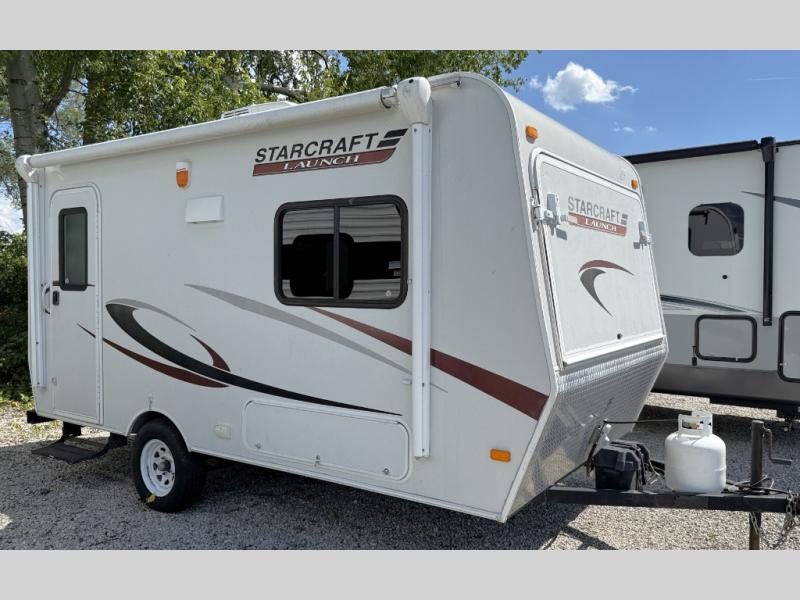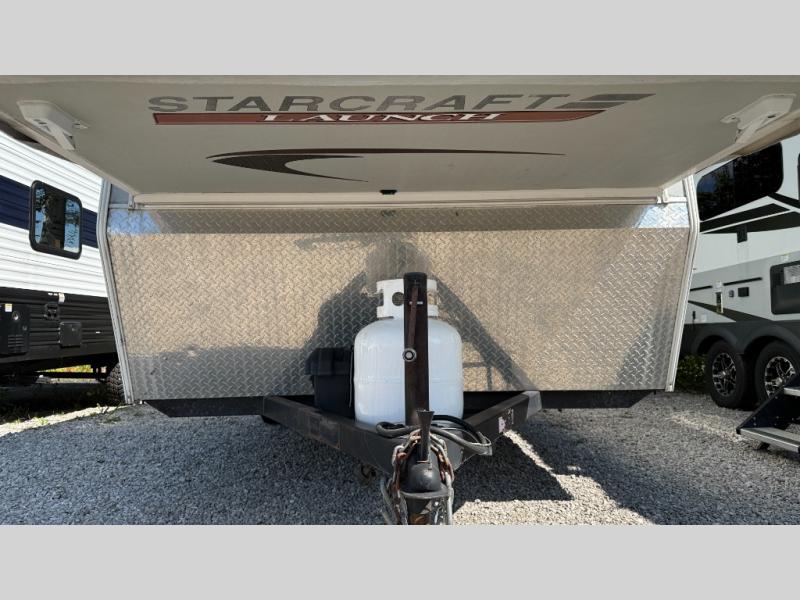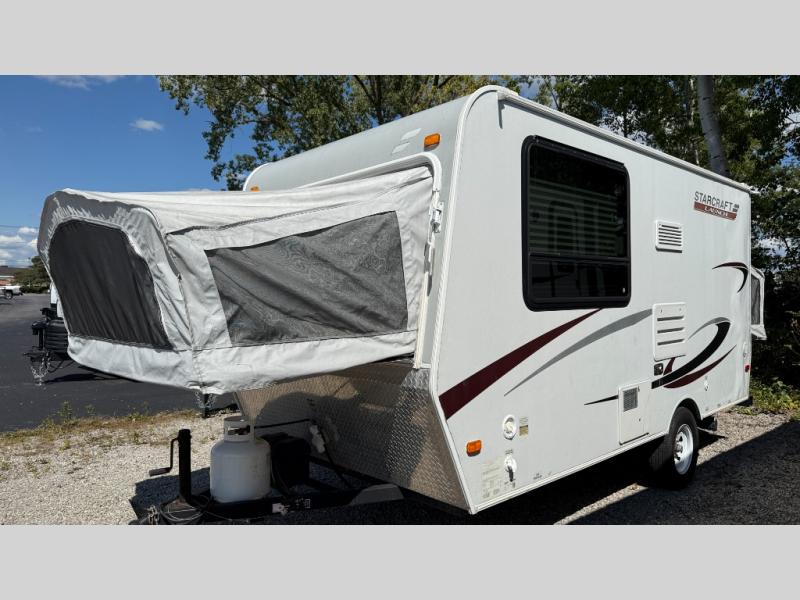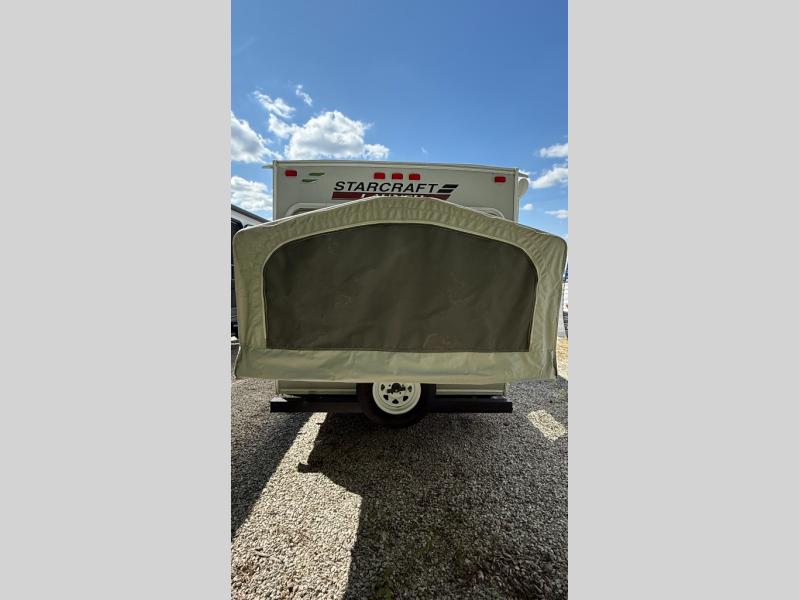Launch Expandable by Starcraft w/Front & Rear Tent End Beds Both w/Overhead Shelf, Rear Corner Bath w/Angle Shower, Toilet & Sink, 4 Cu. Ft. Refrig./Freezer, A/C, 54" Booth Dinette, Sofa w/Overhead Storage, 2 Burner Range, Kitchen Sink, 12' Awning, and Much More!