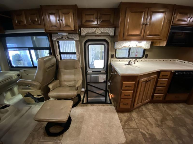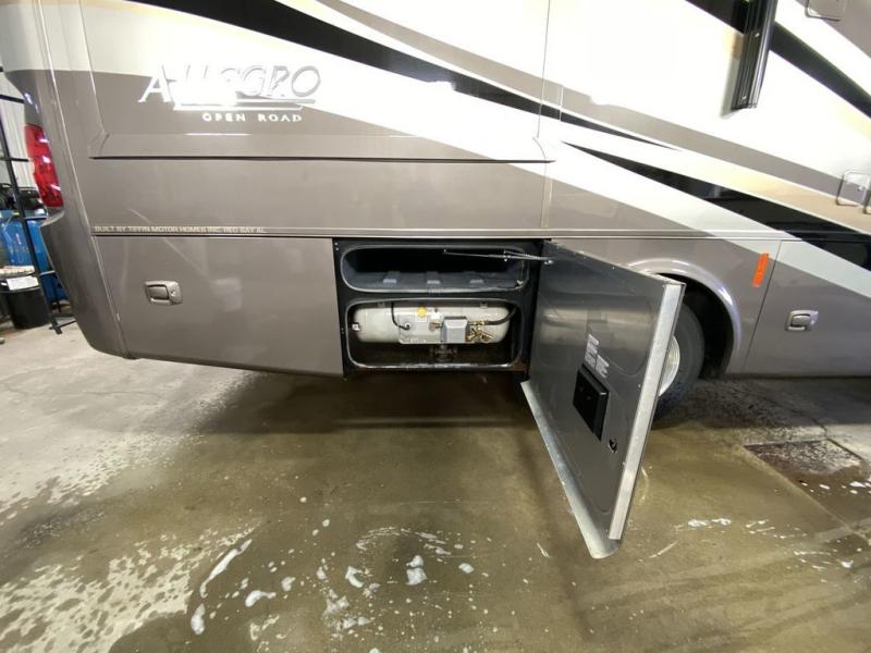 Tiffin Allegro Class A Coach w/Rear Queen Bed Slide w/Nightstands, Wardrobe w/Drawer Below/Vanity, Shower, Private Toilet Area w/Vanity & Sink, 37" TV in Living Area, Pantry, Refrigerator, 3 Burner Range w/Microwave Above, Dbl. Kitchen Sink, Booth Dinette & Sofa Bed Slide w/Overhead Storage Above Both , Lounge Chair and More! Available Options May Include: Tile Floor in Bedroom, Driver's Door, Free Standing Cabinet/Dinette, Bedroom TV, 32" TV Above Cab Area.