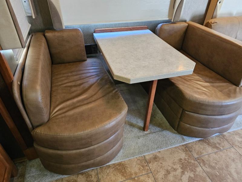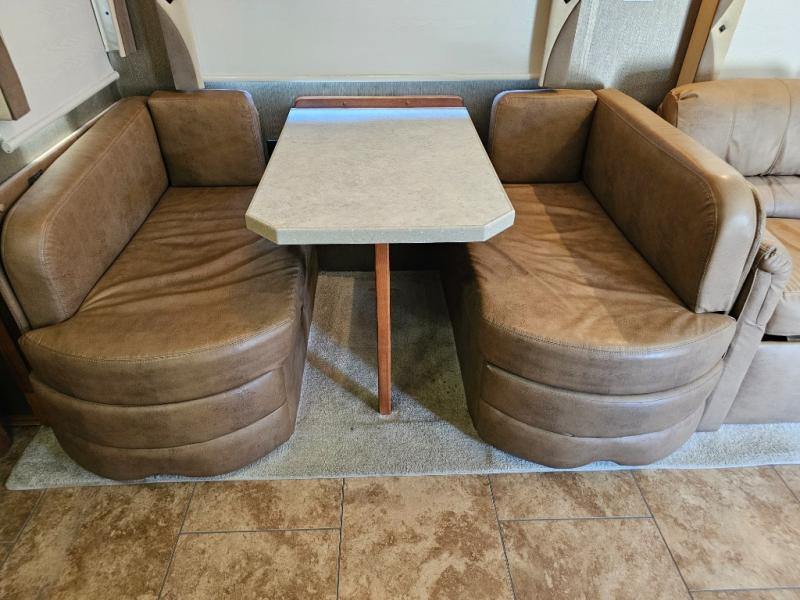 Lounge chair, booth dinette, and sofa bed provide plenty of seating