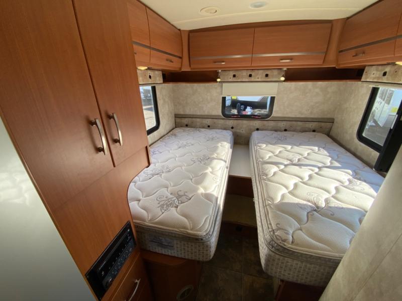 View Profile by Winnebago w/Rear Twin Beds w/Storage Overhead Converts to 74" x 87" Flex Bed, Wardrobe, Refrig., 2 Burner Range, Dbl. Kitchen Sink, Bath w/Shower, Toilet & Sink, Comfort Sofa Sleeper Slideout w/Table, LCD TV in Living Area and Much More! Available Options May Include: L-Shaped Sectional Dinette w/Table, Bedroom TV.