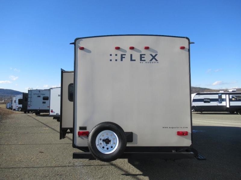 Enjoy camping in this Flex travel trailer model 28BH by Augusta RV. This bunkhouse model is even large enough to take along a few extra family members and friends.
