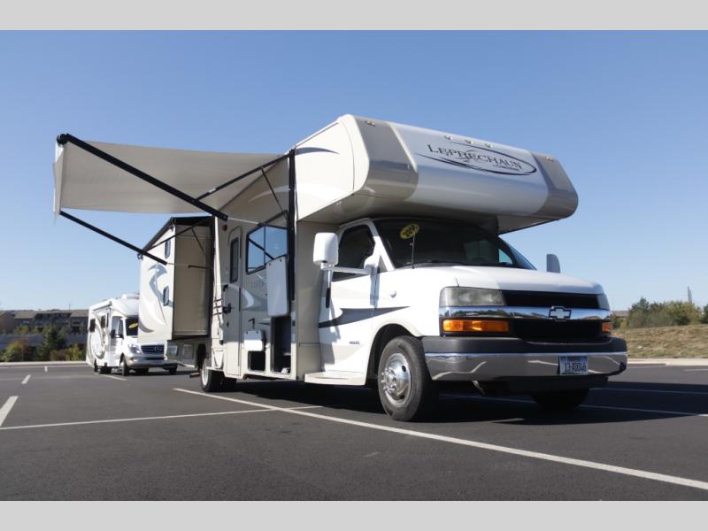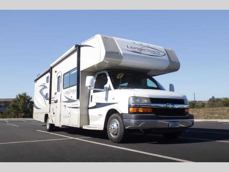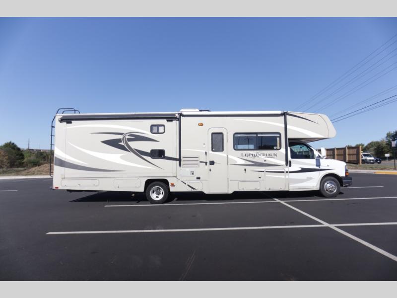 36,400 MILES & HRS OF GENERATOR TIMELeprechaun Class C Bunkhouse Motor Home w/Rear Queen Bed w/Nightstands, Slideout Dresser & Bunk Beds, Side Aisle Bath w/Shower, Toilet, Vanity w/Sink & Med. Cabinet, Linen Cabinet, L-Counter w/Dbl. Kitchen Sink, Refrigerator, Pantry, Booth Dinette w/Overhead, 3 Burner Range & Sofa Slideout, 57" x 95" Cabover Bunk and Much More! Available Options May Include: Ent. Center IPO Cab Over Bunk, 450 Ford Chassis.