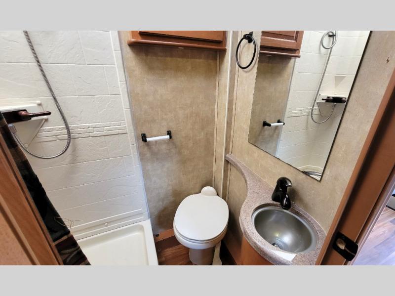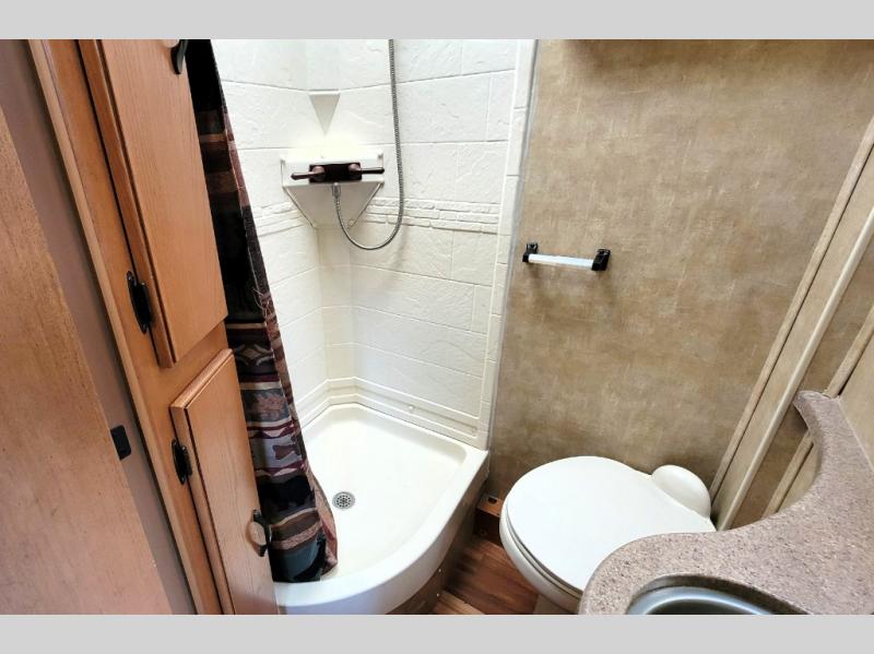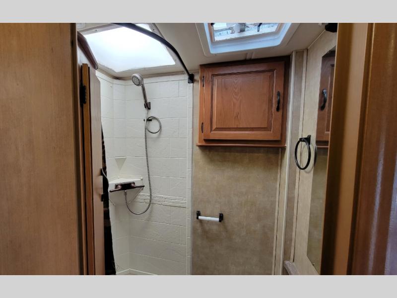The rear queen bed slide with nightstands provides a comfy nights sleep, and the slide allows you more space to move around easily.