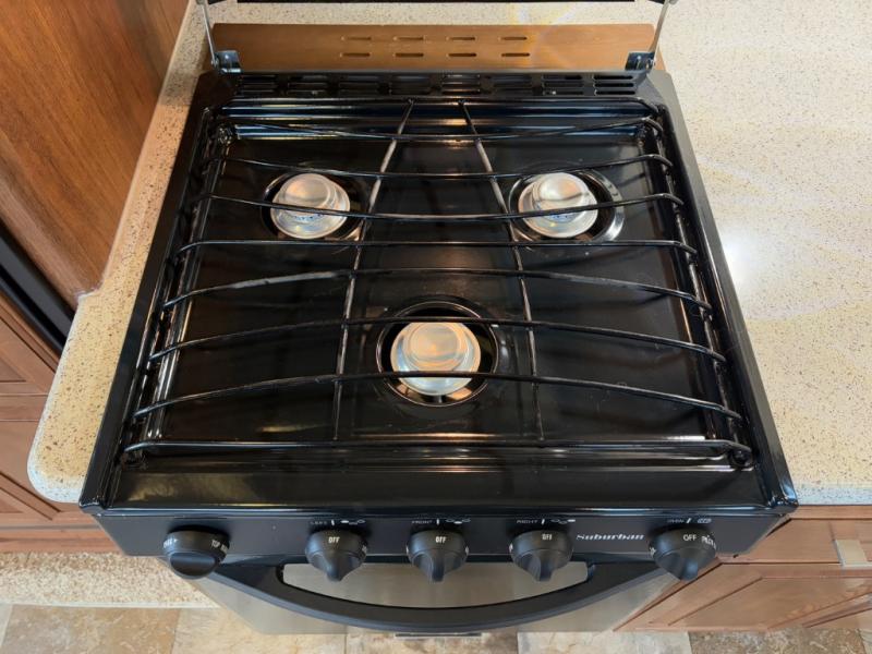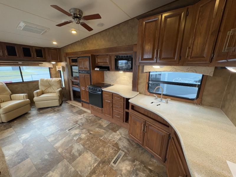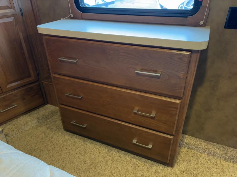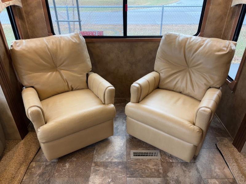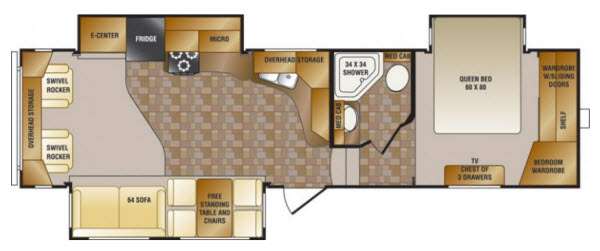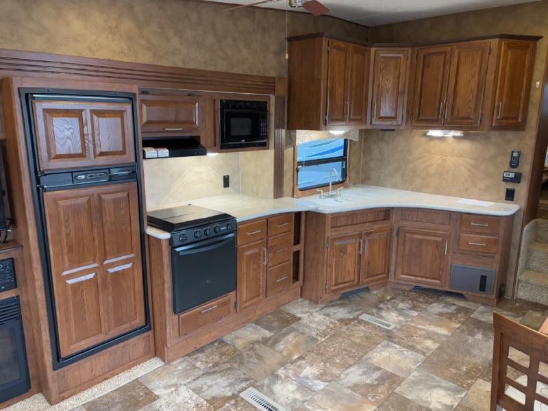 Triple Slide Cruiser Patriot/Provincial Fifth Wheel, Rear Living Area w/2-Swivel Rockers, Entertainment Center/Refrigerator/Spice Rack/3-Burner Range/Microwave Slide, Dbl. Kitchen Sink, Sofa/Free-Standing Table and Chairs Slide, Step Up To Bed/Bath, Lav., Med. Cab., Shower, Med. Cab., Toilet, Queen Bed Slide, Wardrobe w/Sliding Doors, Shelf, Wardrobe, Chest of Drawer w/TV Above, Overhead Cabinets Throughout & Much More.
